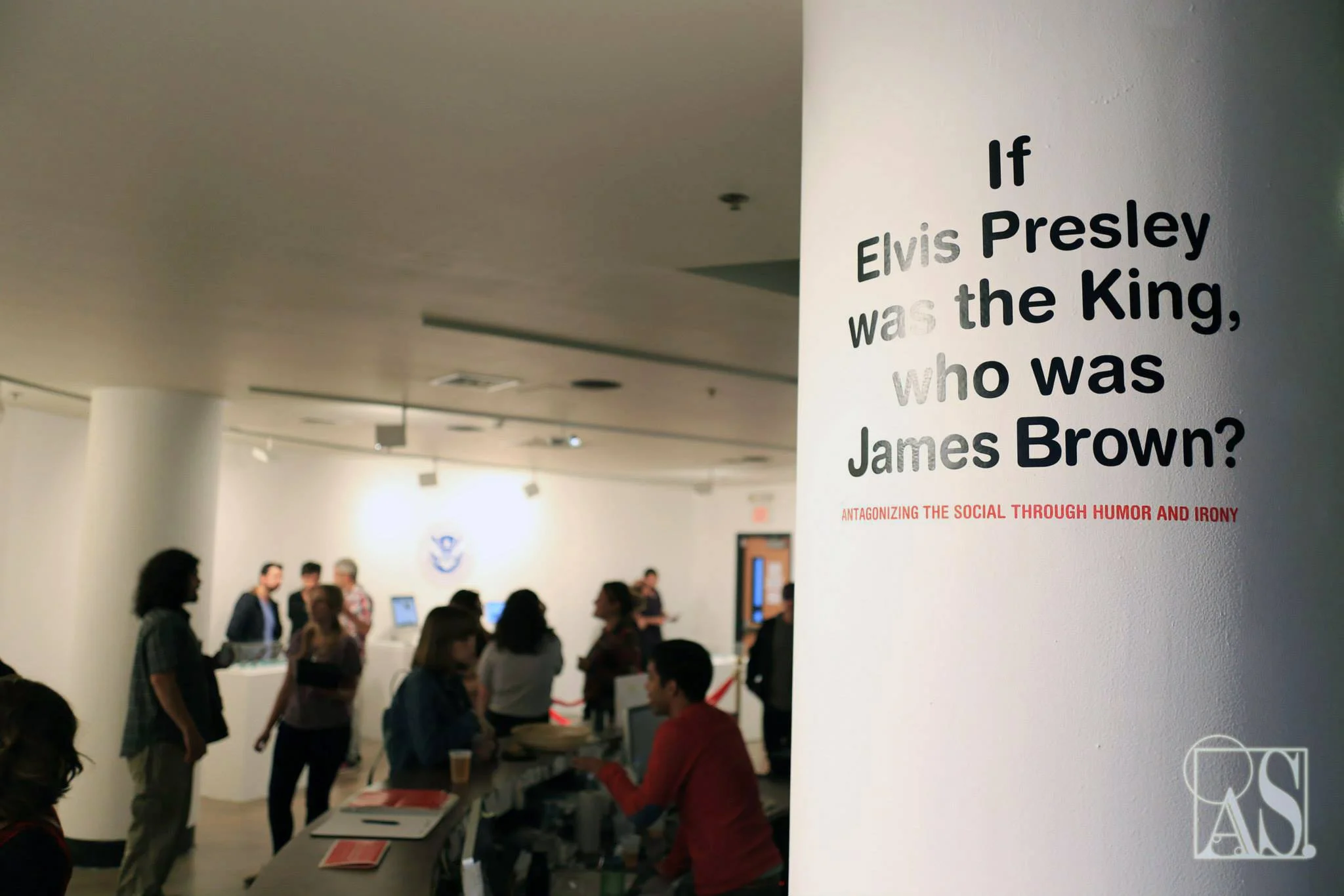 “If Elvis Presley was the King, who was James Brown?” is not a funny show; nor a cynical one. In spite of mass media products, advertisements, and many artworks demonstrate that there’s a thin line between humor/irony and cynicism, the artists who participate in this exhibition don’t cover and ignore; they precisely act and function as a catalysts to uncover and recognized opening negotiations of power with society, daily life, and art itself. This exhibition aims to continue an ongoing conversation where precisely humor and irony play as an antidotes against forget and dismiss, consent and agreement. The artworks displayed in this exhibition demonstrate that the smile is not only the last thing you can wear, and how some art practices continue to be an effective tool to bring into question and engage within our daily life. (David De Rozas & Fred Alvarado)