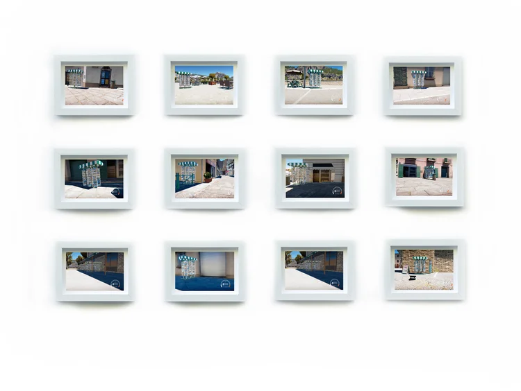 In 2016, we produced several postcards of postcard racks based on a series of photographs that we took within the virtual world of Forza Horizon 2, a racing game published by an American corporation, Microsoft. Forza Horizon 2 is set in a fictional, idealized version of what Americans usually call “postcard Italy”. We then proceeded to print several hundreds and started slipping them into postcards racks disseminated in shops around Northern Italy, inserting their work into an existing distribution system. We also sent the postcards to a selected number of friends, curators, and critics. The postcards thus began a new journey, in multiple, colliding realities.