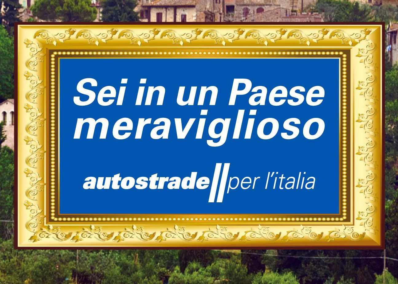 (4) The artwork's title “YOU'RE IN A WONDERFUL COUNTRY” is a literal translation of “Sei in un paese meraviglioso”, a campaign launched by the Italian highway company in 2014, Autostrade, to promote car-based tourism in the Belpaese. Surprisingly, the campaign does not mention the proliferation of litter, congestion, or car-related accidents that plague Italy. The campaign looks like this: